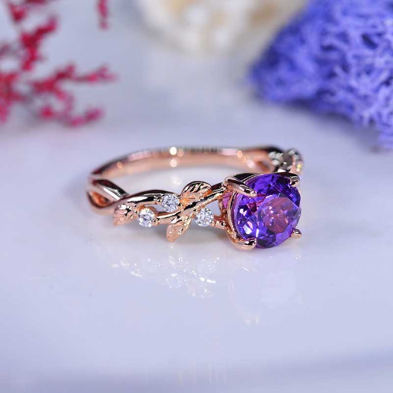 The default design option features 7mm Ethical Lab-Grown Lavender Purple Sapphire Center Stone VVS-Clarity, VG-Cut, Ex-Polish, VG-Symmetry