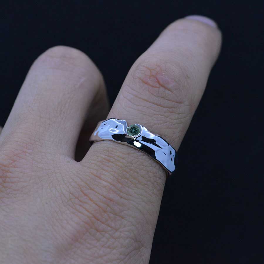 "Liquid Metal" Teal Sapphire Men's 14K White Gold Ring. - Giliarto