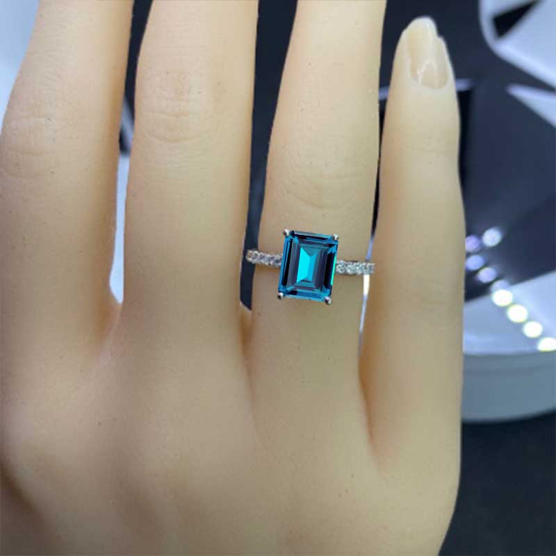 The design features approximately 3 Carat Ethically Lab-Grown Cornflower Sapphire - Emerald 9x7mm