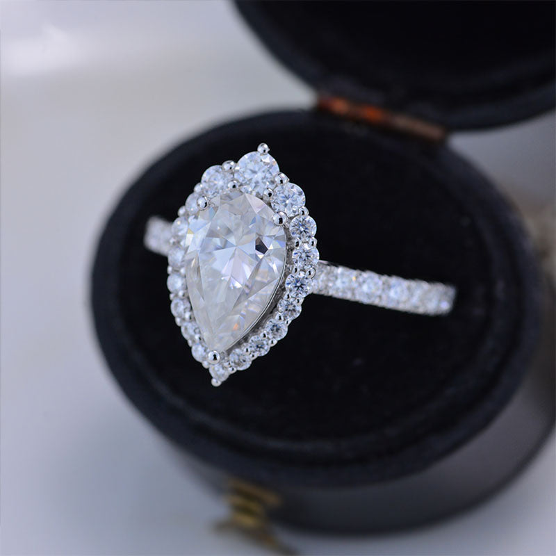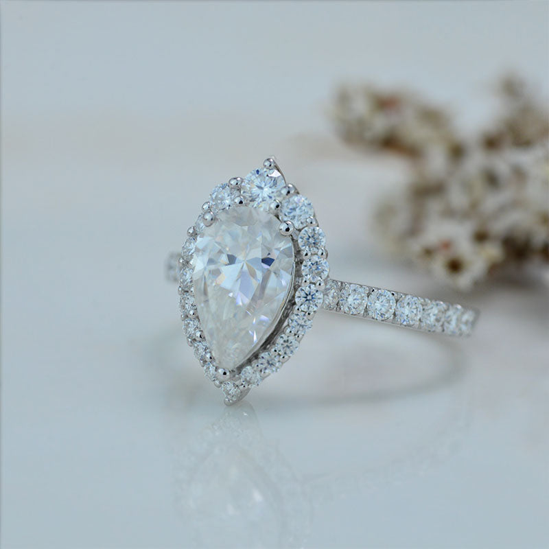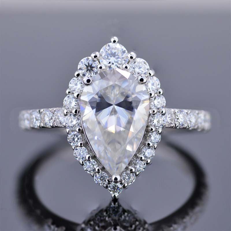 Luxury 3 Carat Pear Cut Halo Lab Diamond 14K Solid White Gold Model 728-11x7