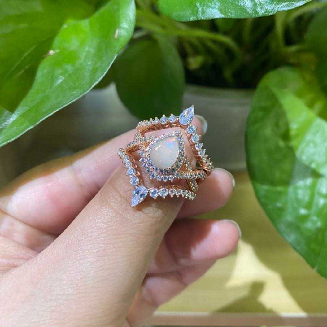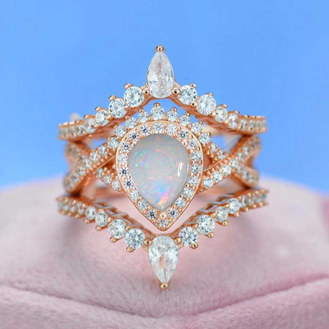 Luxury Genuine White Opal Ring Set, 2ct Pear Cut Genuine White Opal Ri - Giliarto