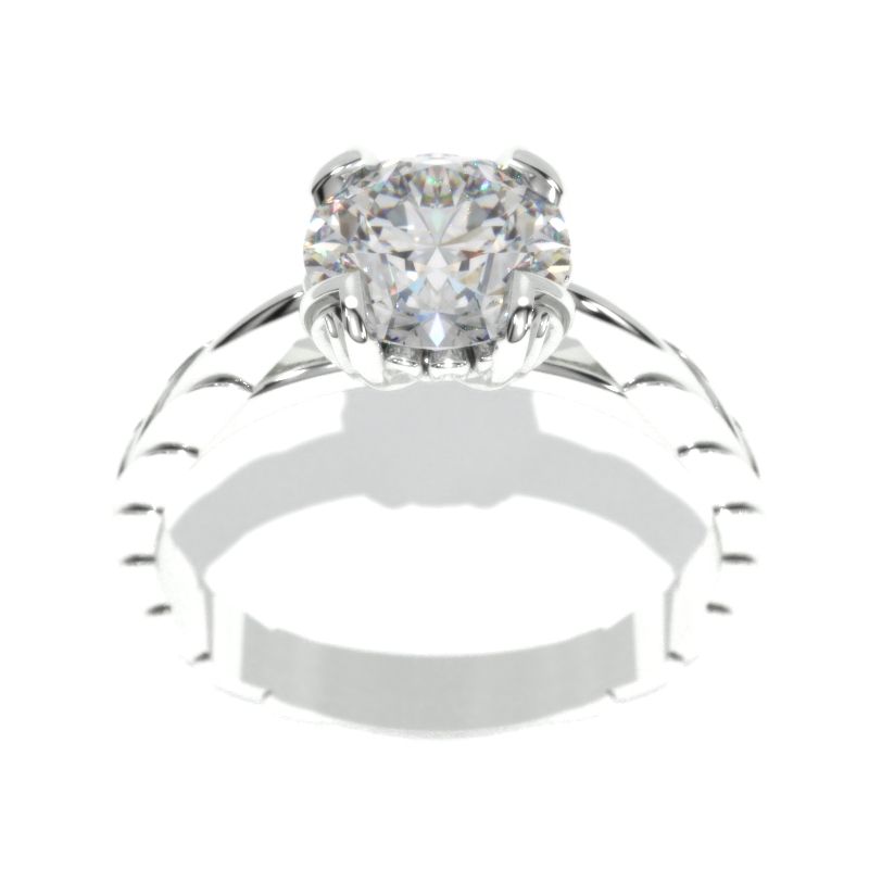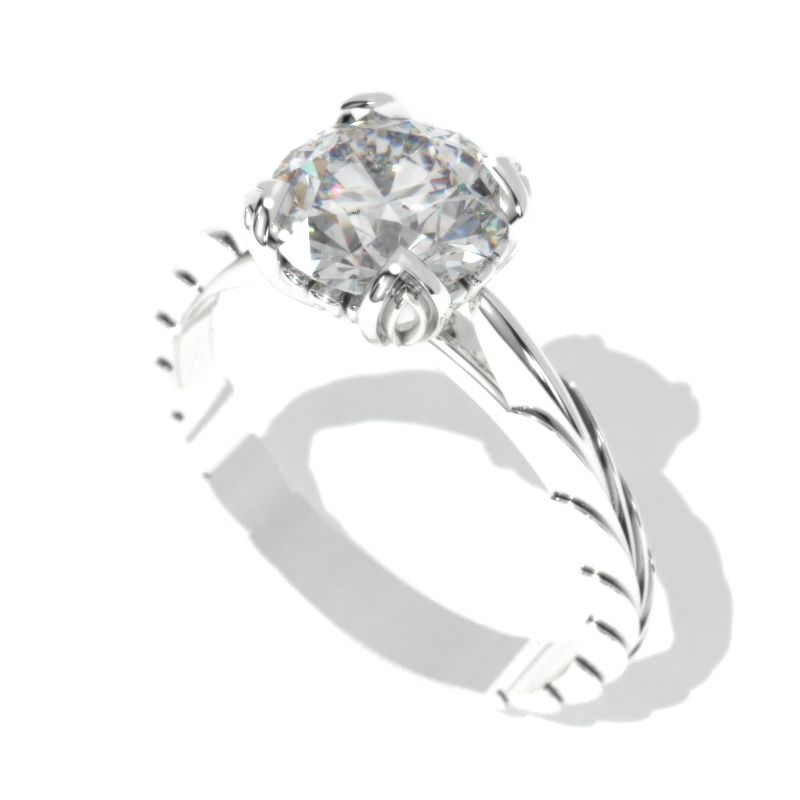 Approximately 2.0+ Carat LAB-Grown Diamond Center Stone (Round 8mm, D-Colorless, VVS1-Clarity, Ex-Cut, Ex-Polish, VG-Symmetry) in 14K White Gold Floral Engagement Ring.