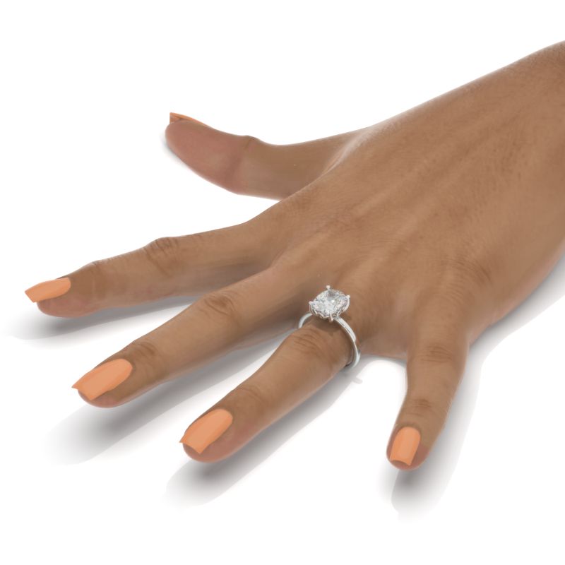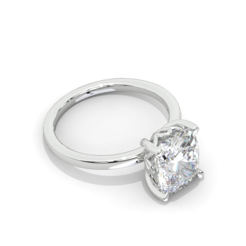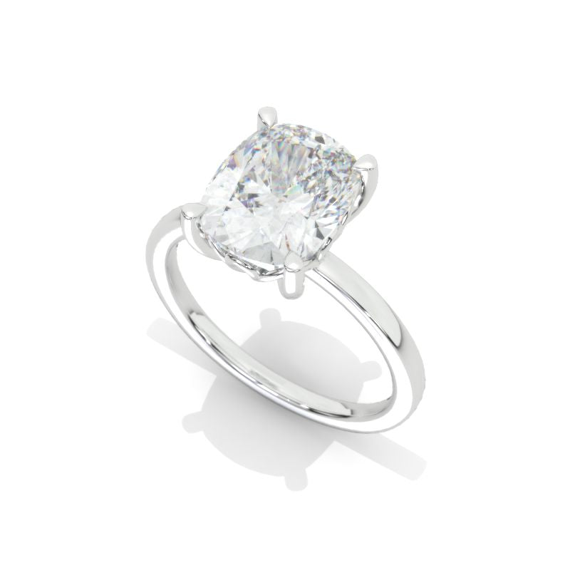 The default design option features 10x8mm Cushion Cut Giliarto Moissanite Center Stone D-Colorless VVS1-Clarity, VG-Cut, Ex-Polish, VG-Symmetry set with D- Colorless Moissanite Accent StonesÂ
