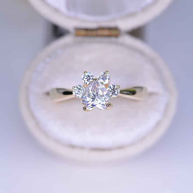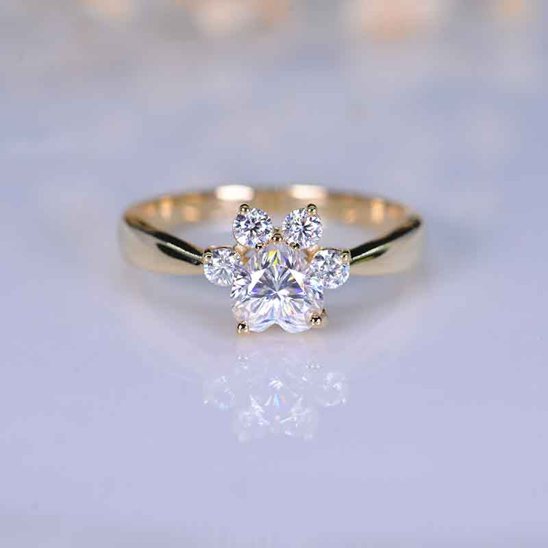 Moissanite Halo Dog Cat Paw Ring