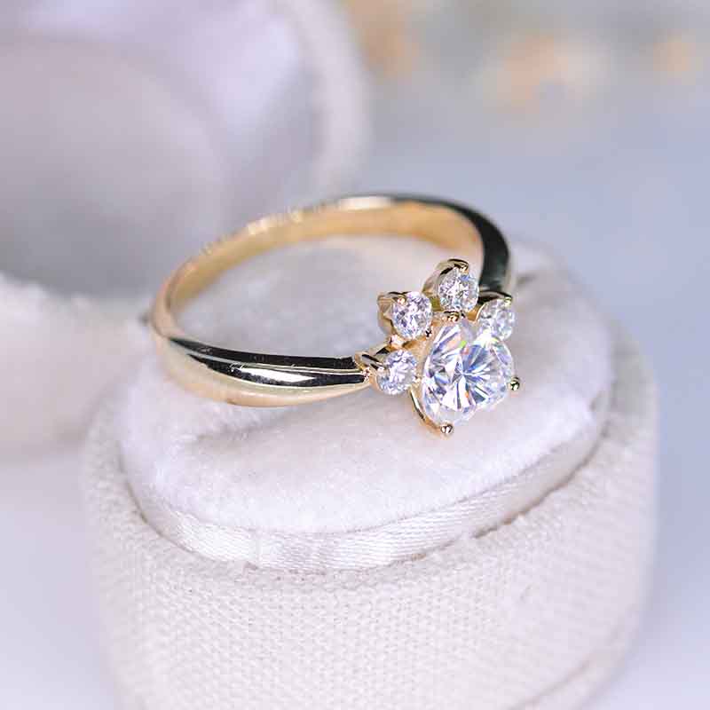 Moissanite Halo Dog Cat Paw Ring - Giliarto
