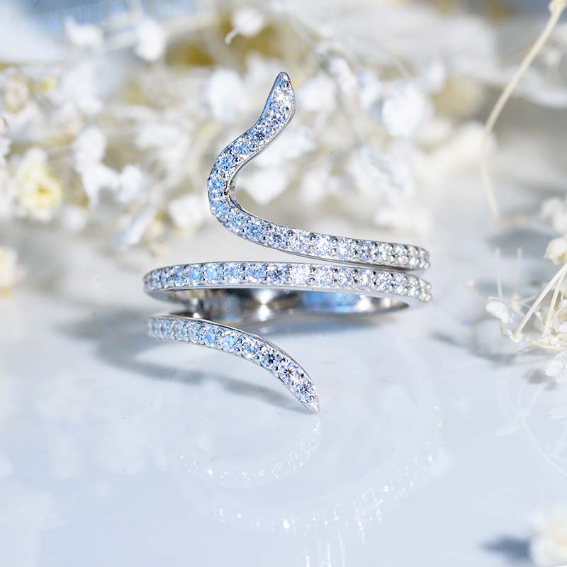 Moissanite Stackable Twisted Serpentine Snake Wedding Ring Model 1300