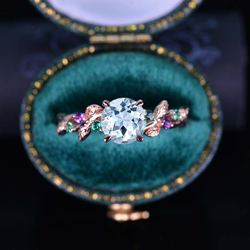 Natural Aquamarine Floral Rose Gold Engagement Ring - Giliarto