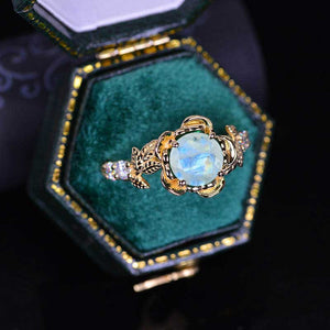 Natural Moonstone Floral Halo Engagement Ring - Giliarto