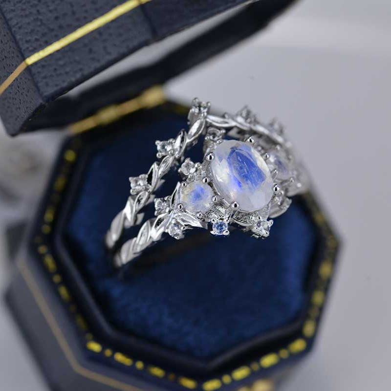 Engagement ring Moonstone Size: 8x6mm Oval Center stone.