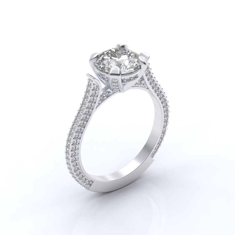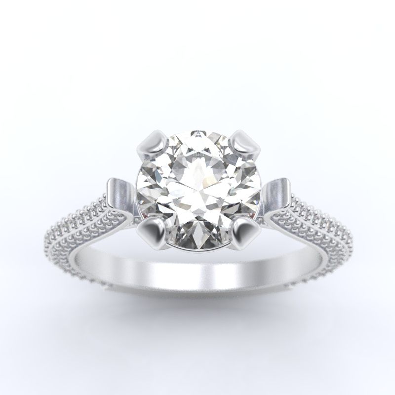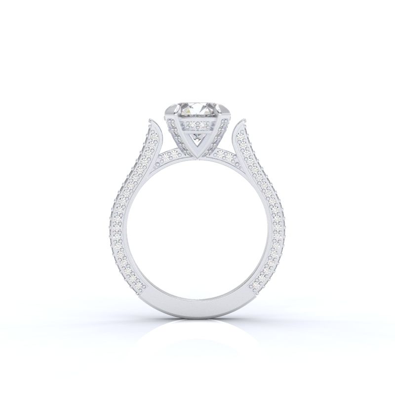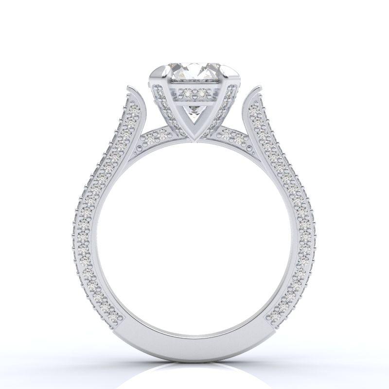 ''Orion'' moissanite ring decorated with high quality natural diamonds as accent stones. The center moissanite stone perfectly completes the design concept.