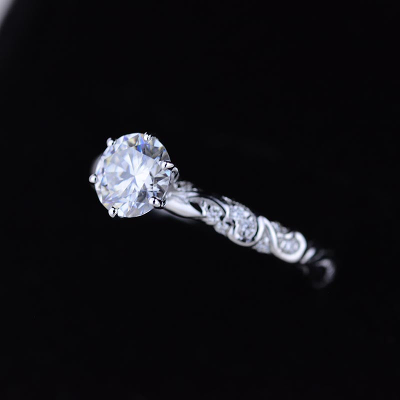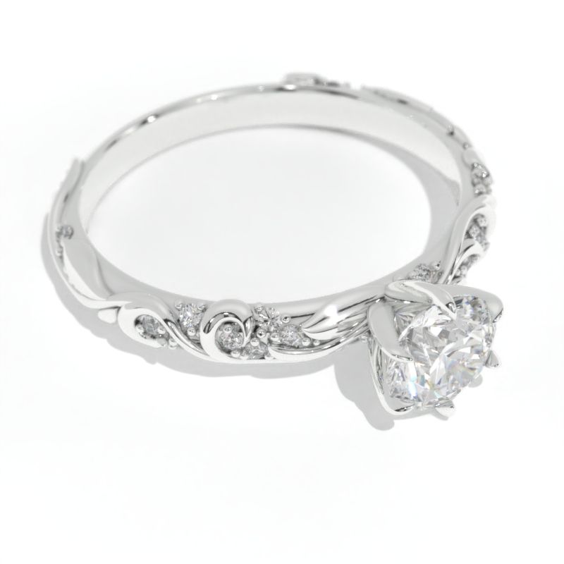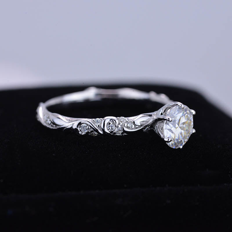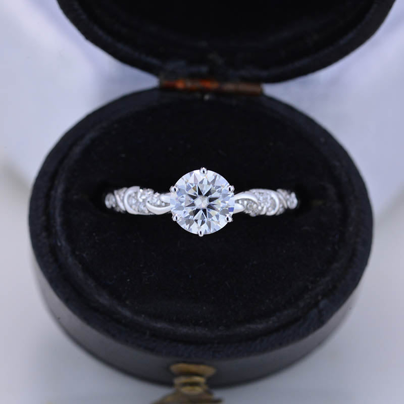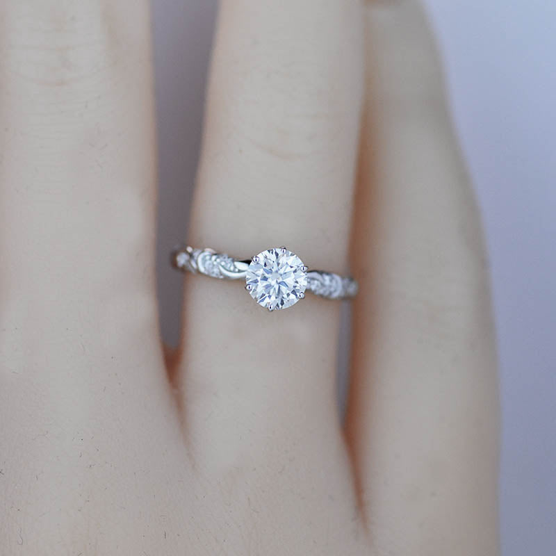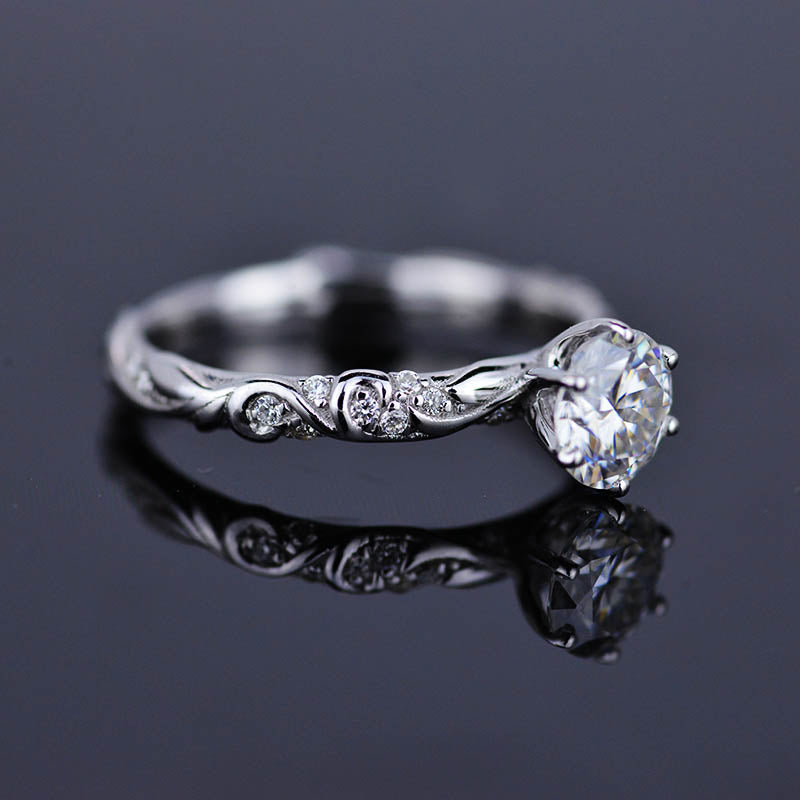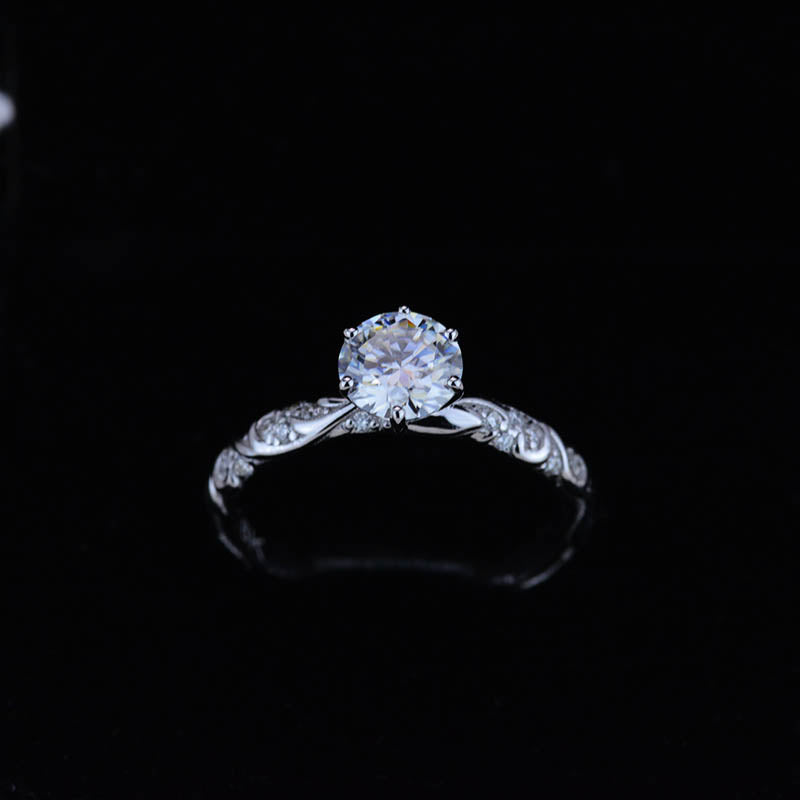 The default design option features 6mm Round Giliarto Moissanite Center Stone: D-Colorless, VVS1-Clarity and 0.1 CTW D-Colorless, VVS1-Clarity, VG-Cut, Ex-Polish, VG-Symmetry Accent Stones ( D-Colorless)