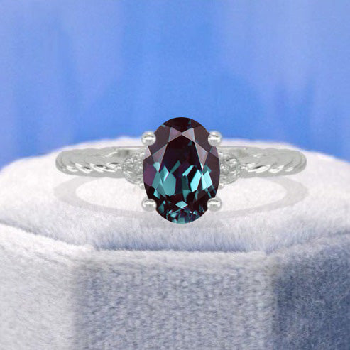 The default design option features 8x6mm Oval Center Ethically LAB-Grown Alexandrite stoneVVS1-Clarity, VG-Cut, Ex-Polish, VG-Symmetry