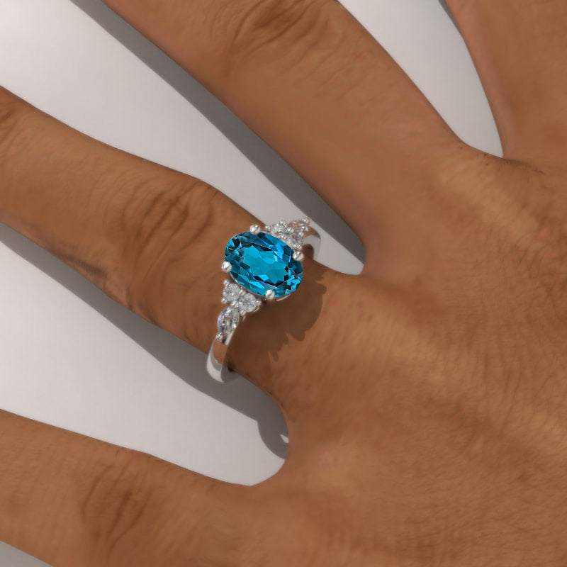 Oval Genuine London Blue Topaz 14K White Gold Engagement Promissory Ri - Giliarto