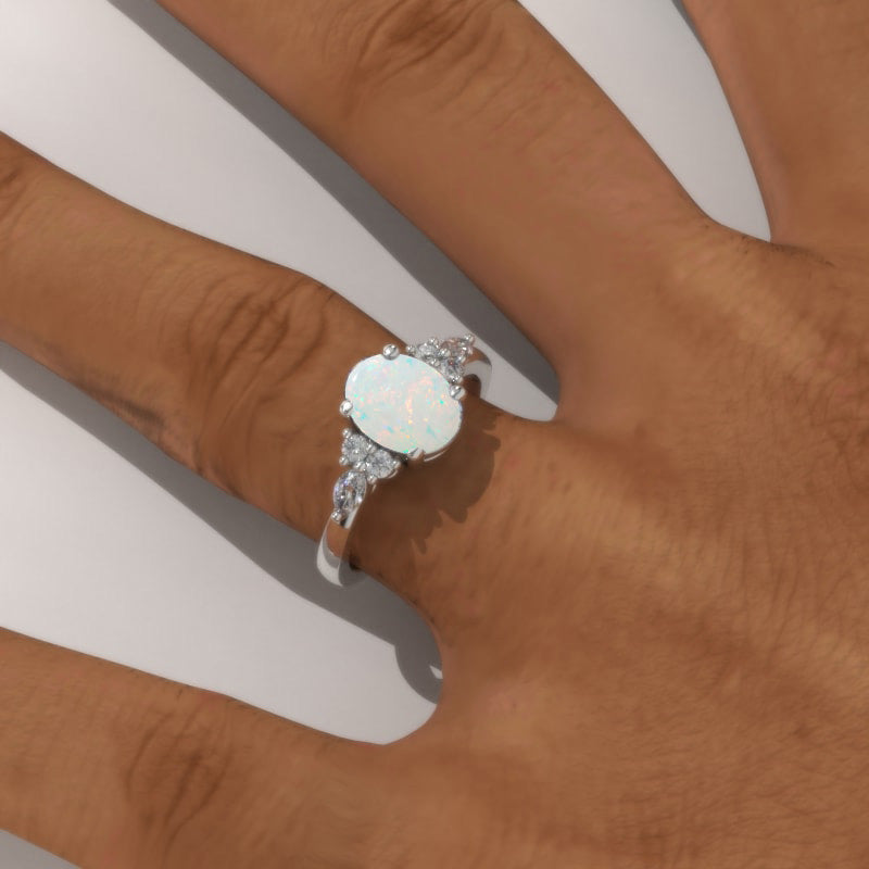 Metal: Solid 14K gold. Center Stone Type: White Opal Center Stone Clarity: VVS1 Shape: Round Cutting: Excellent Engagement Ring: Center Approximate Carat Weight: 2.ct--9x7mm