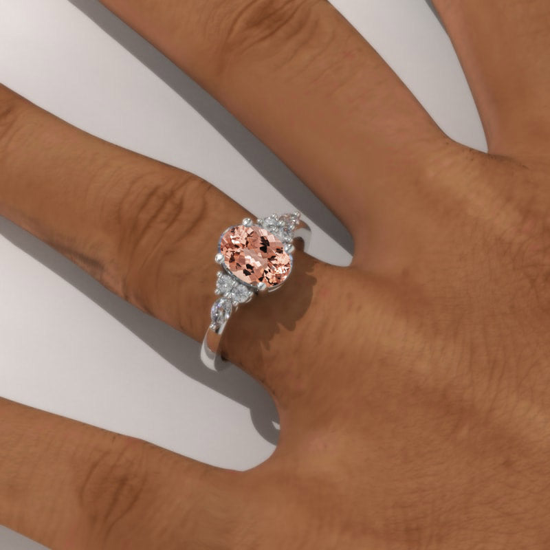 Oval Genuine Peach Morganite 14K White Gold Engagement Promissory Ring - Giliarto