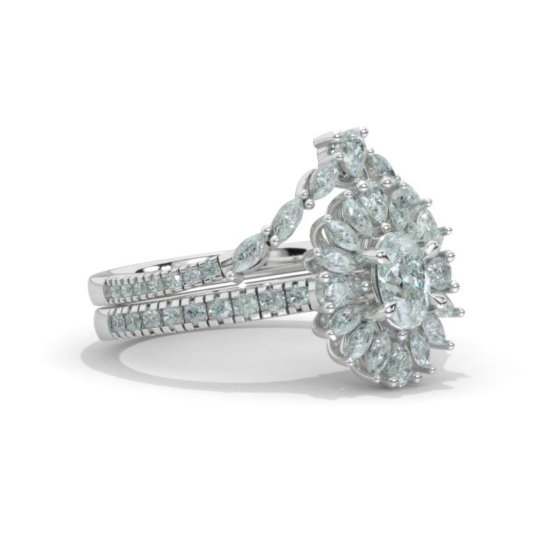 Engagement Ring: LAB-Grown Diamond Oval 6x4mm D-Colorless, VVS1-Clarity, VG-Cut, Ex-Polish, VG-Symmetry Center Stone in 14K White Gold Ring.