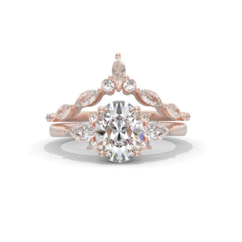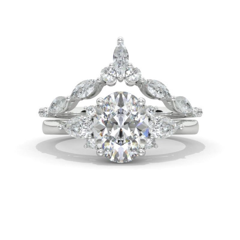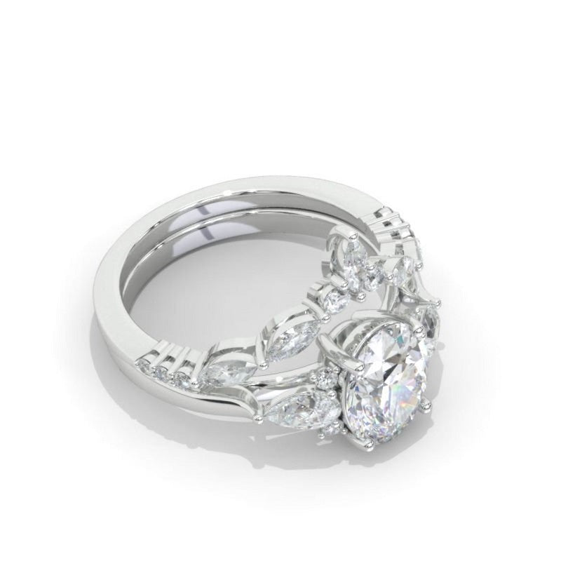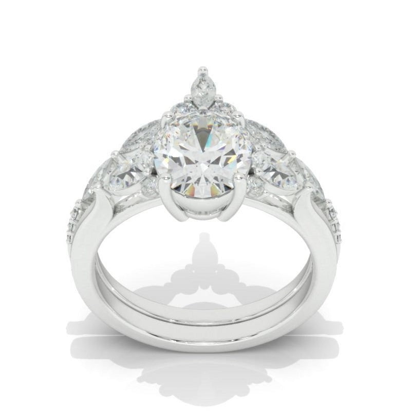The default design option features 8x6mm Oval Center LAB-Grown Diamond StoneĀ D-Colorless, VVS1-Clarity, VG-Cut, Ex-Polish, VG-Symmetry, Set with Colorless LAB-Grown Diamond Accent stonesĀ in 14KĀ White Gold Engagement Ring.Ā