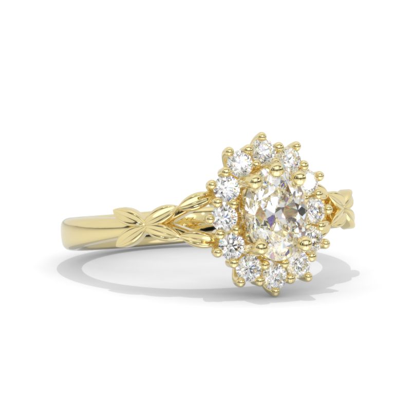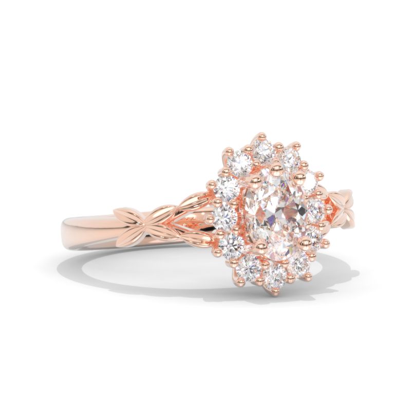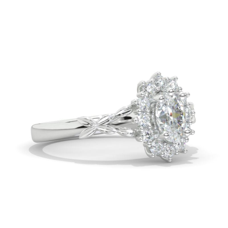 Oval LAB-Grown Diamond Halo Floral Celtic Engagement Ring 14K White Gold Ring Model 867-7x5
