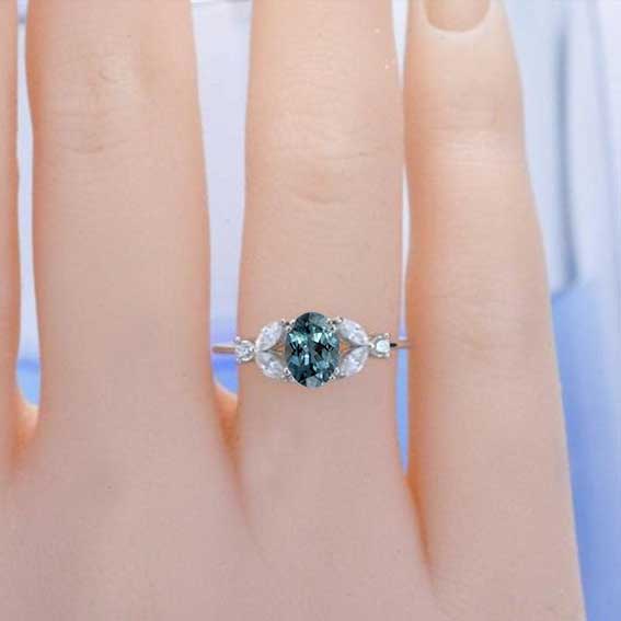Oval Teal Sapphire Engagement Ring Set - Giliarto