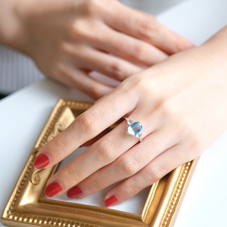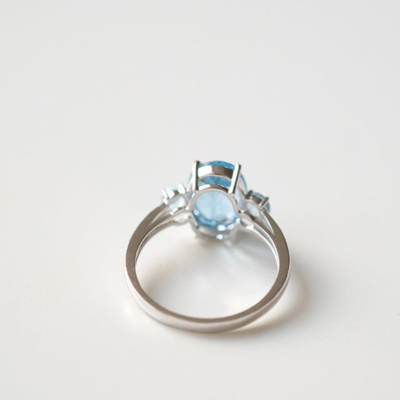 Oval Three Stone Aquamarine ring, Aquamarine ring, natural aquamarine - Giliarto