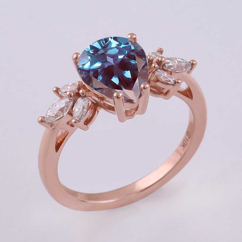 Pear shaped Alexandrite engagement ring vintage Unique Marquise cut Cluster engagement ring rose gold wedding Bridal gift for women
