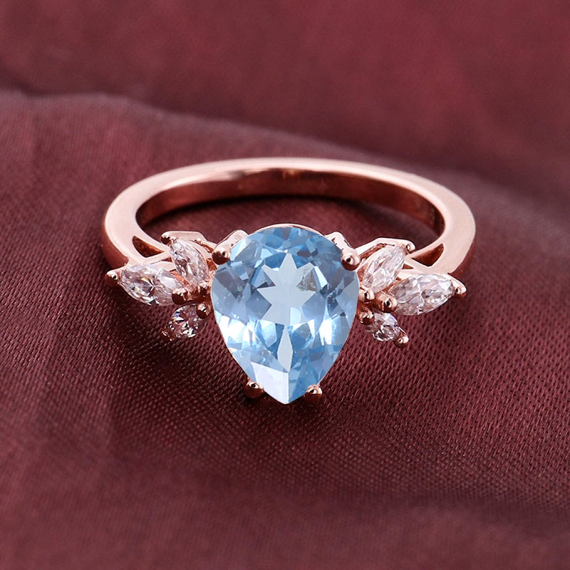 Pear shaped Genuine Natural Aquamarine engagement ring vintage Unique - Giliarto