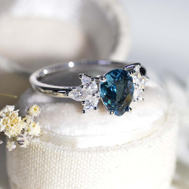 Pear Shaped Teal Sapphire Engagement Ring. Vintage Unique Marquise Cut - Giliarto
