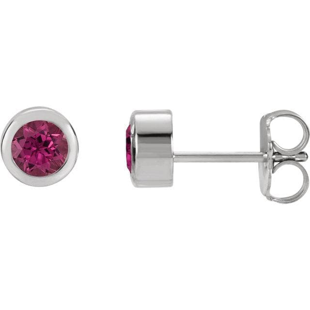Round Genuine Pink Tourmaline Bezel Set Stud 14K White Gold Earrings