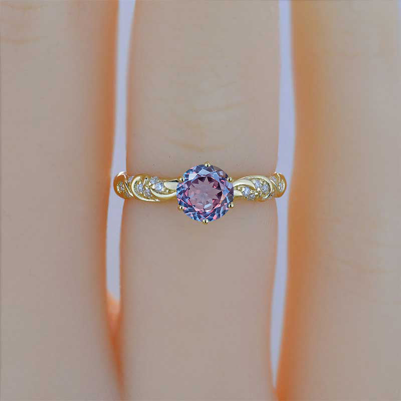 Portuguese Cut Alexandrite Gold Ornaments Engagement Ring - Giliarto