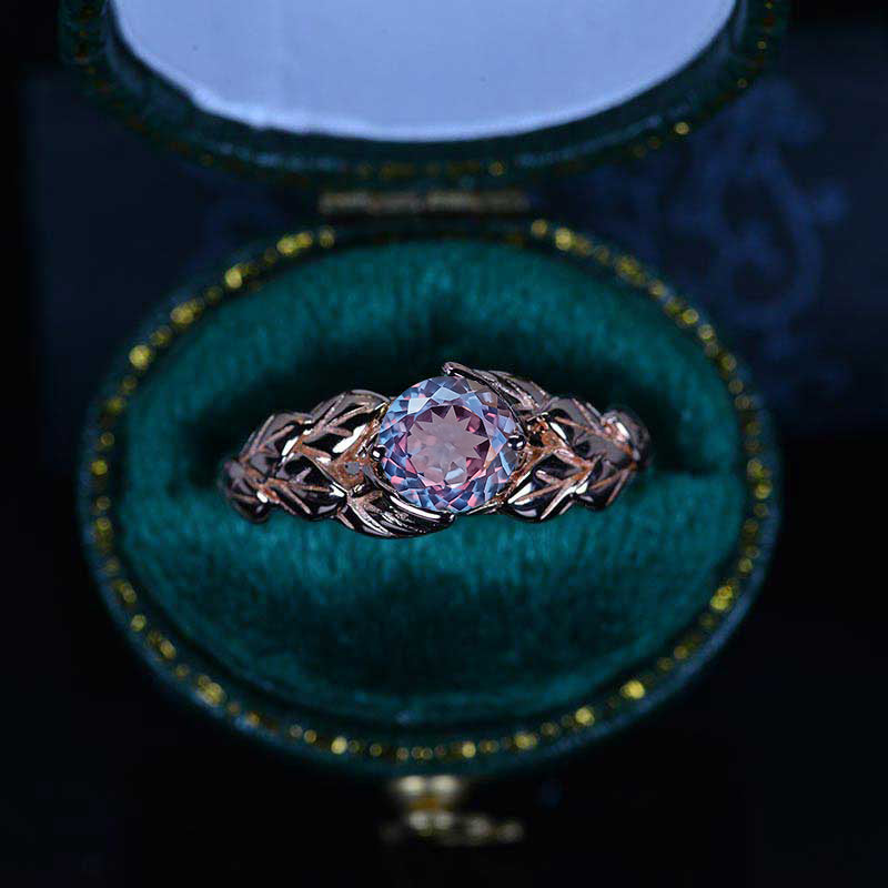 Portuguese Cut Alexandrite Leaf Engagement Ring 14K Rose Gold