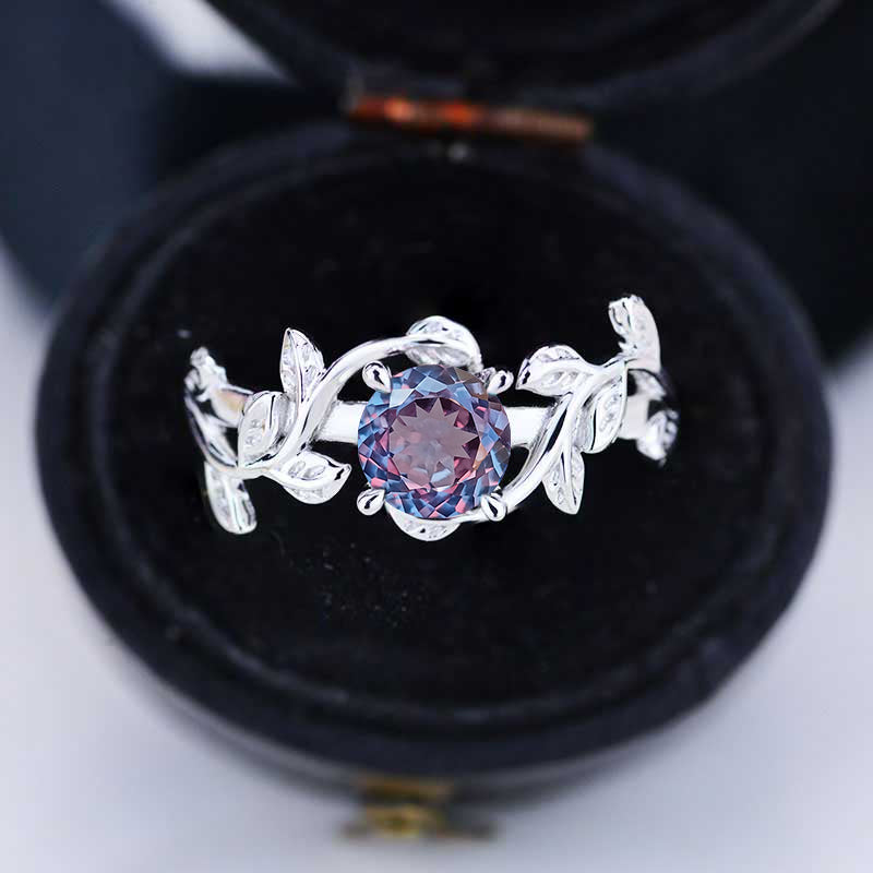 Portuguese Cut Alexandrite Twig Floral White Gold Engagement Ring - Giliarto
