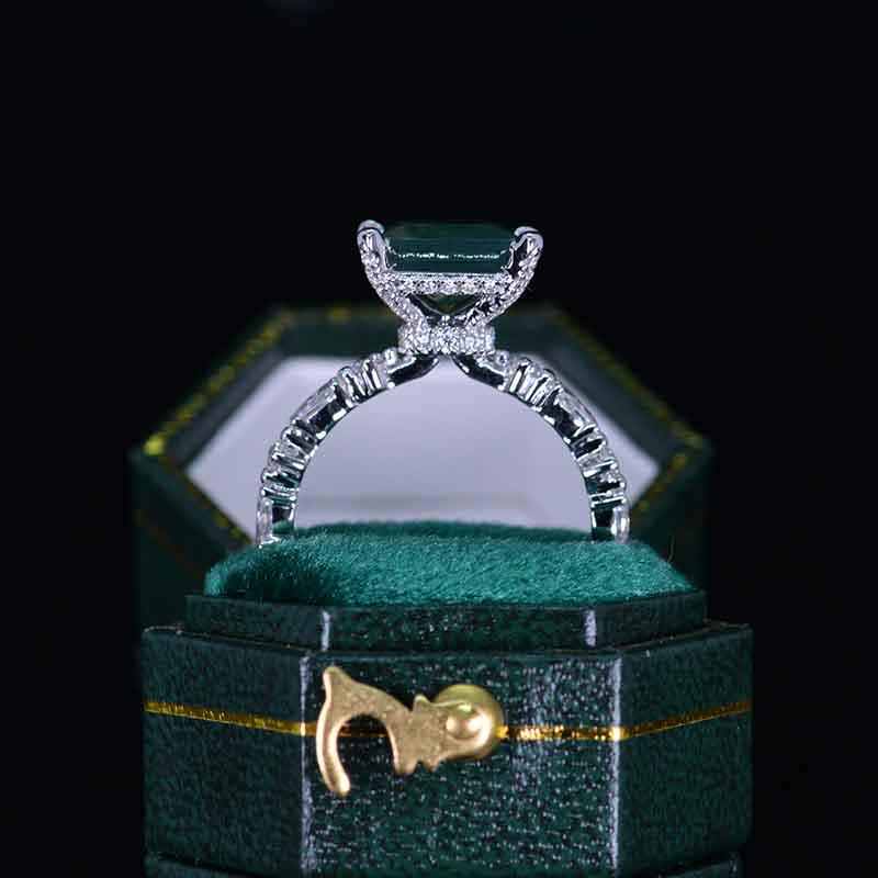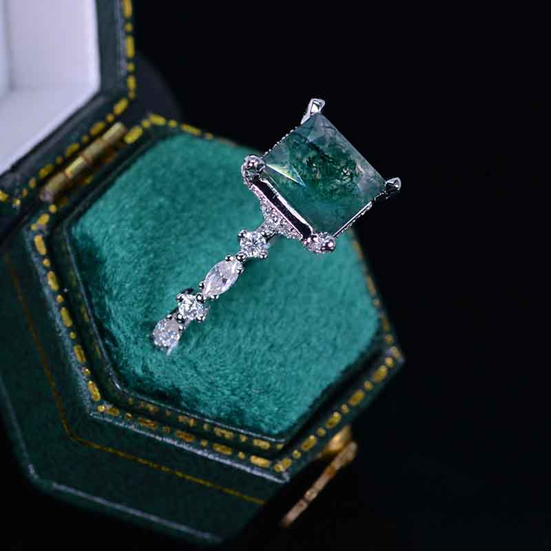 The default design option features 8x8mm Genuine Moss AgateĀ Center StoneĀ VG-Cut, Ex-Polish, VG-Symmetry