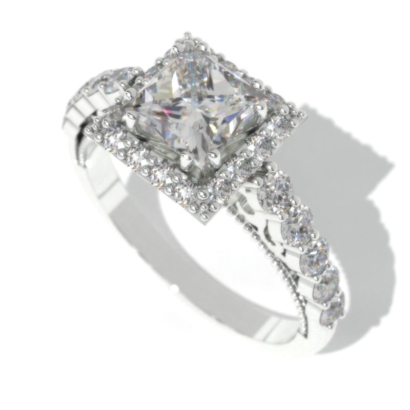 Princess Cut LAB-Grown Diamond Halo Engagement Ring