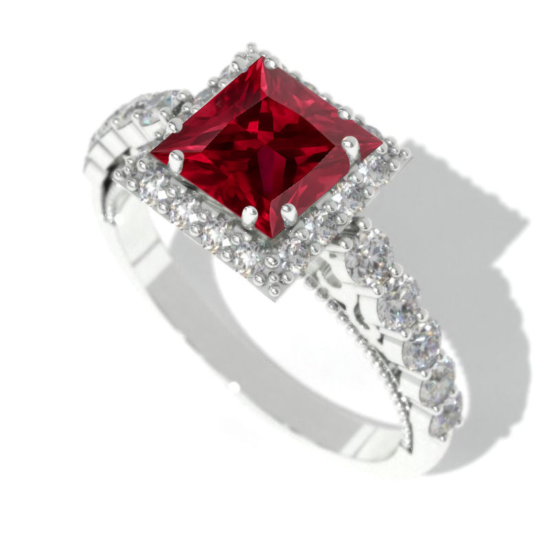 Princess Cut Ruby Halo Engagement Ring - Giliarto
