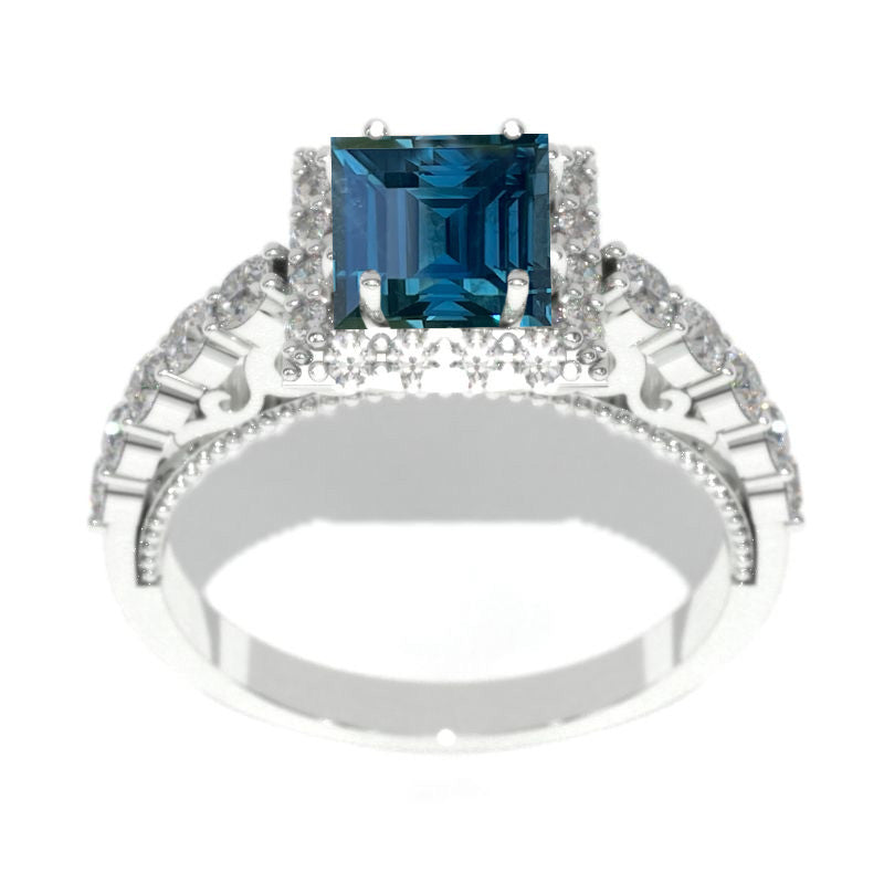 The default design option features 1.5 Carat Princess Cut 6x6mm Ethically LAB-Grown Teal Sapphire Stone