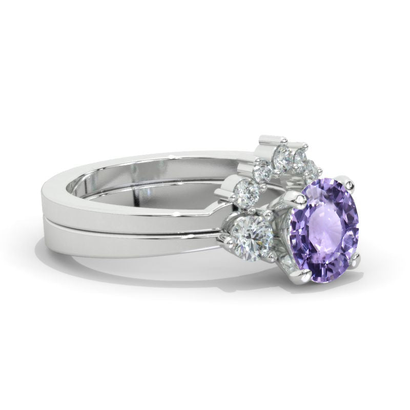 The default design option features Ethically Lab-Grown Purple Sapphire, VG-Cut, Ex-Polish, VG-Symmetry Center Stone (Colorless)