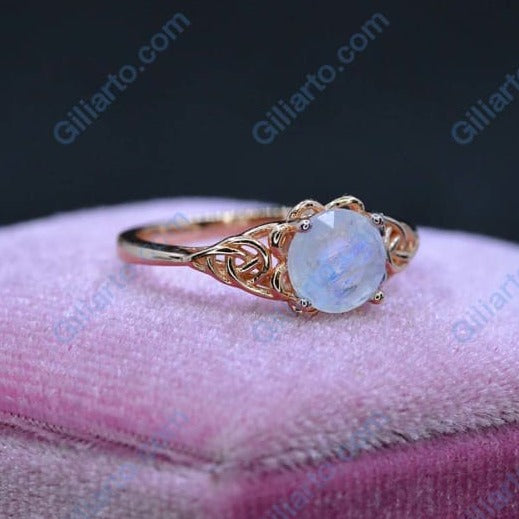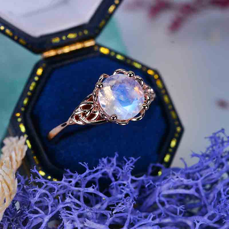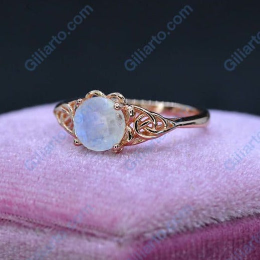 Moonstone Center Stone - Round 8 mm, D-Colorless, VVS1-Clarity, Ex-Cut, Ex-Polish, VG-Symmetry with 14K Rose Gold.