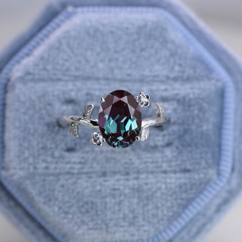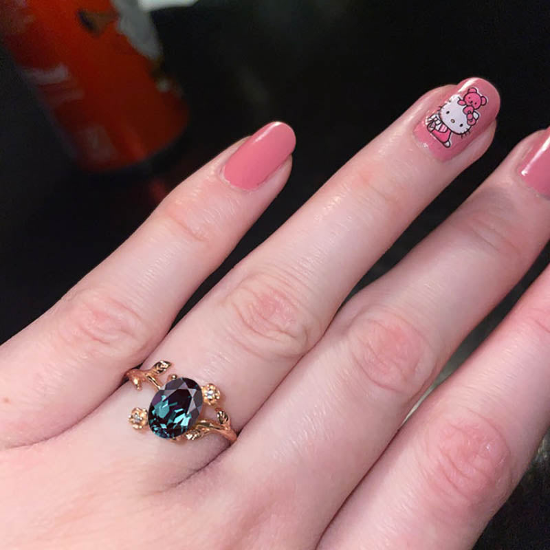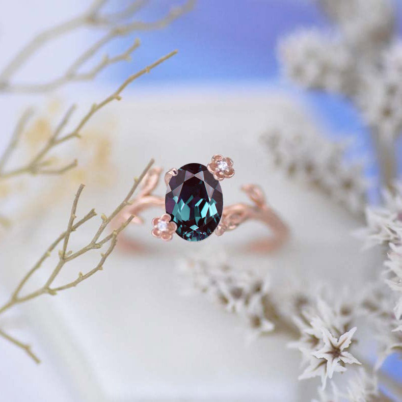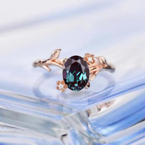 Rose Gold Alexandrite Leaf Ring, 1.5ct Oval Alexandrite Twig Ring, Ros - Giliarto