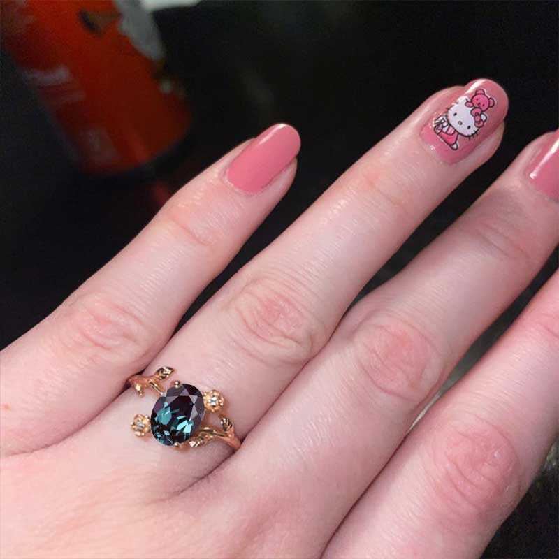 Rose Gold Dainty Alexandrite Leaf Ring, 1.5ct Oval Alexandrite Twig Ri - Giliarto