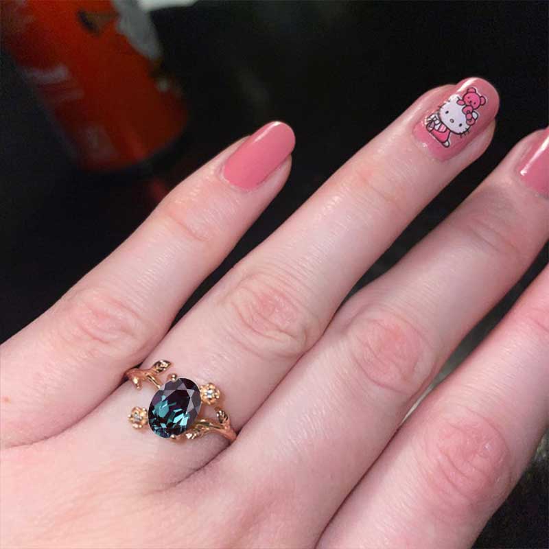Rose Gold Dainty Alexandrite Leaf Ring, 2ct Oval Alexandrite Twig Ring - Giliarto