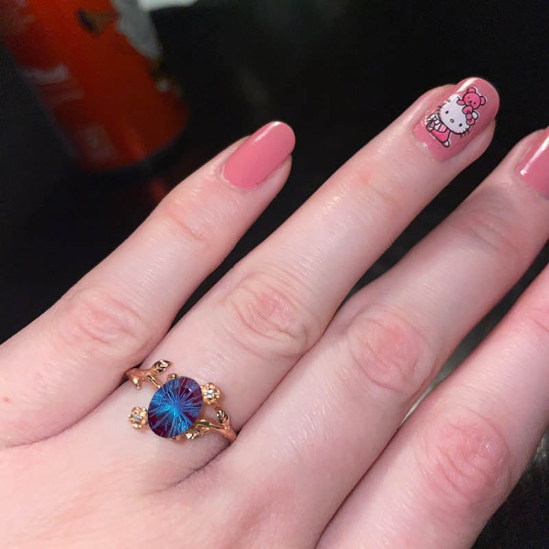 Rose Gold Fireworks Cut Alexandrite Leaf Ring, 1.5ct Oval Alexandrite Twig Ring, Rose Gold Ring Unique Curved Vintage Floral Ring
