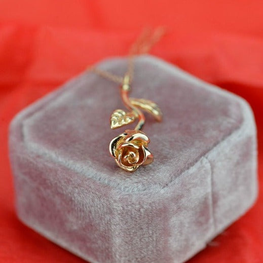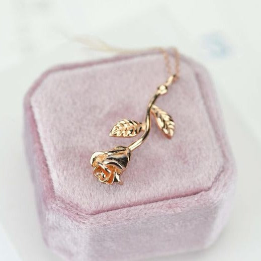 Rose Gold Rose Stem Pendant Necklace, Rose Necklace, Bridesmaid Gift, - Giliarto