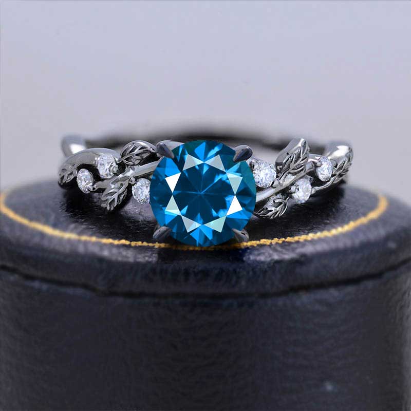 Round Brilliant Cut Cornflower Sapphire Floral Black Gold Engagement R - Giliarto
