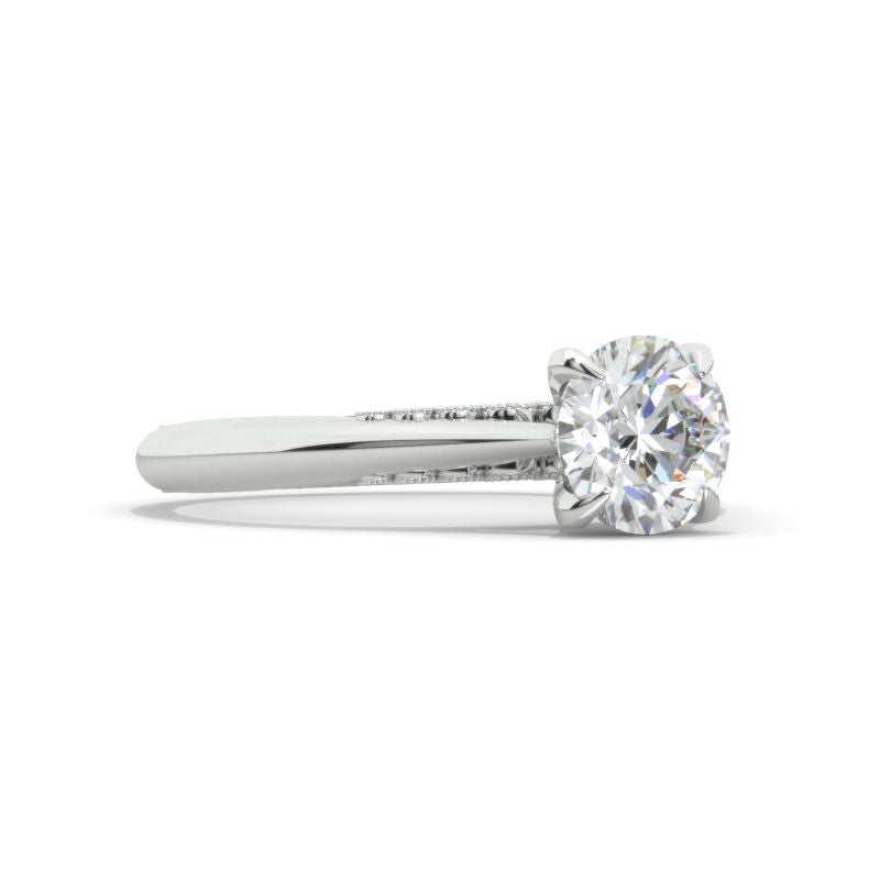 The default design option features 7mm Round LAB-Grown Diamond Center Stone: D-Colorless, VVS1-Clarity and Approximately 0.3+ CTW D-Colorless, VVS1-Clarity, VG-Cut, Ex-Polish, VG-Symmetry Accent Stones (Colorless)