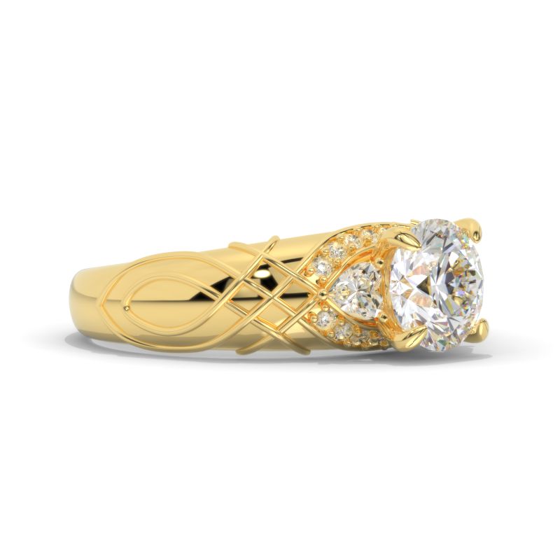 Round Celtic Moissanite Giliarto Floral Shank Gold Engagement Ring Model 1108