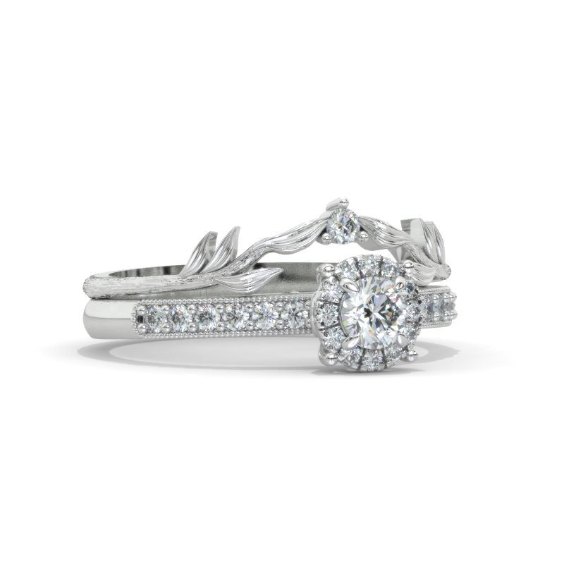 Engagement Ring : LAB-Grown Diamond Round Cut 4mm D-Colorless, VVS1-Clarity, VG-Cut, Ex-Polish, VG-Symmetry Center Stone with Colorless Approximately 0.23+ CTW LAB-Grown Diamond