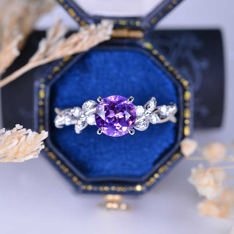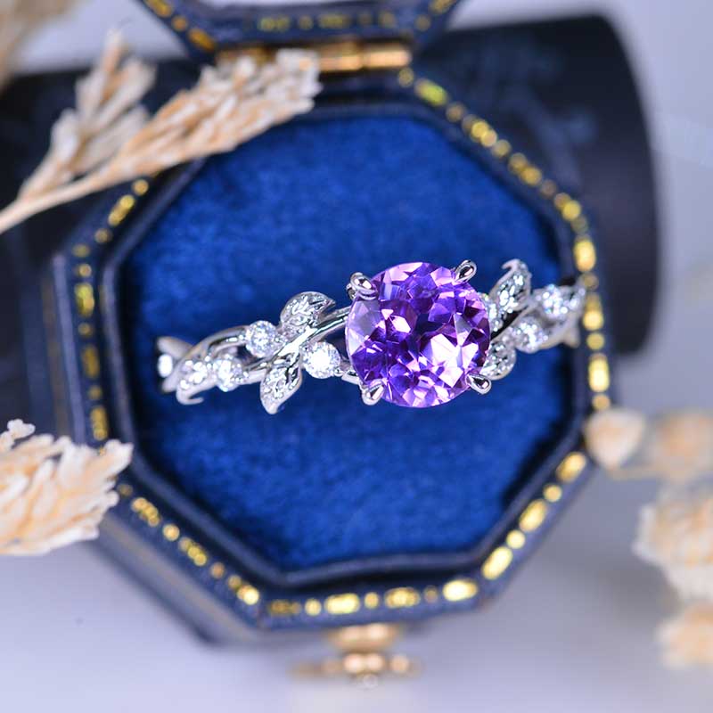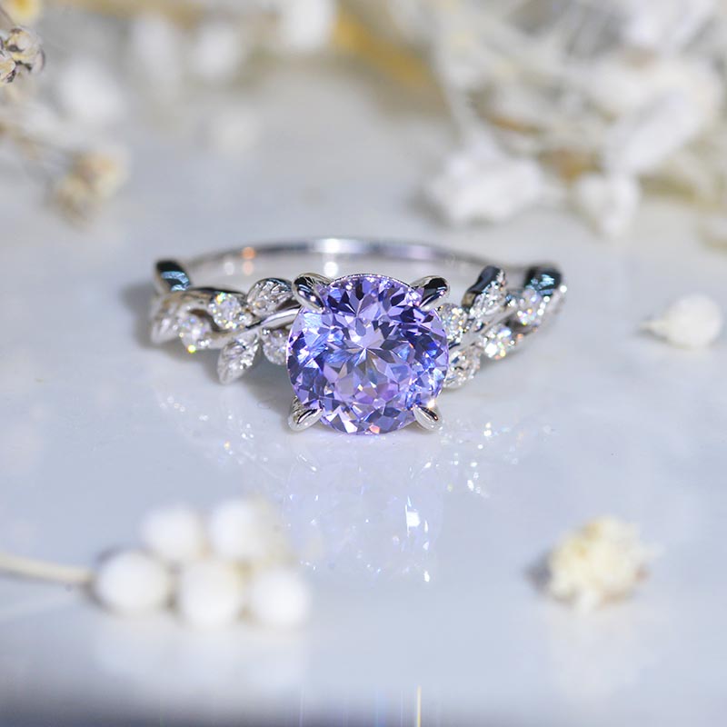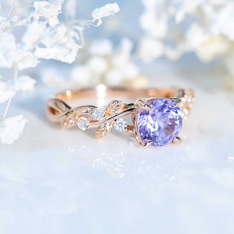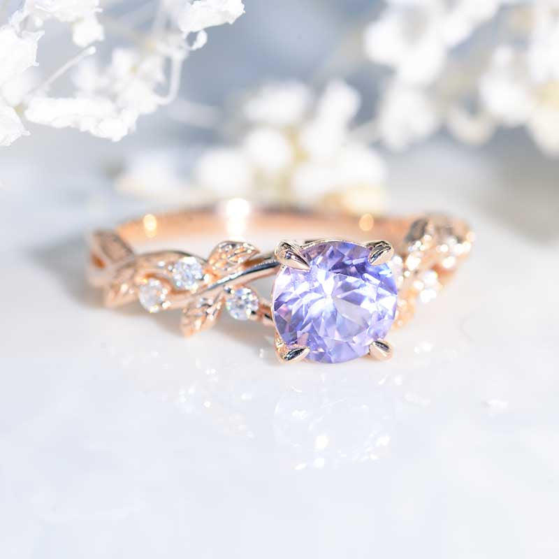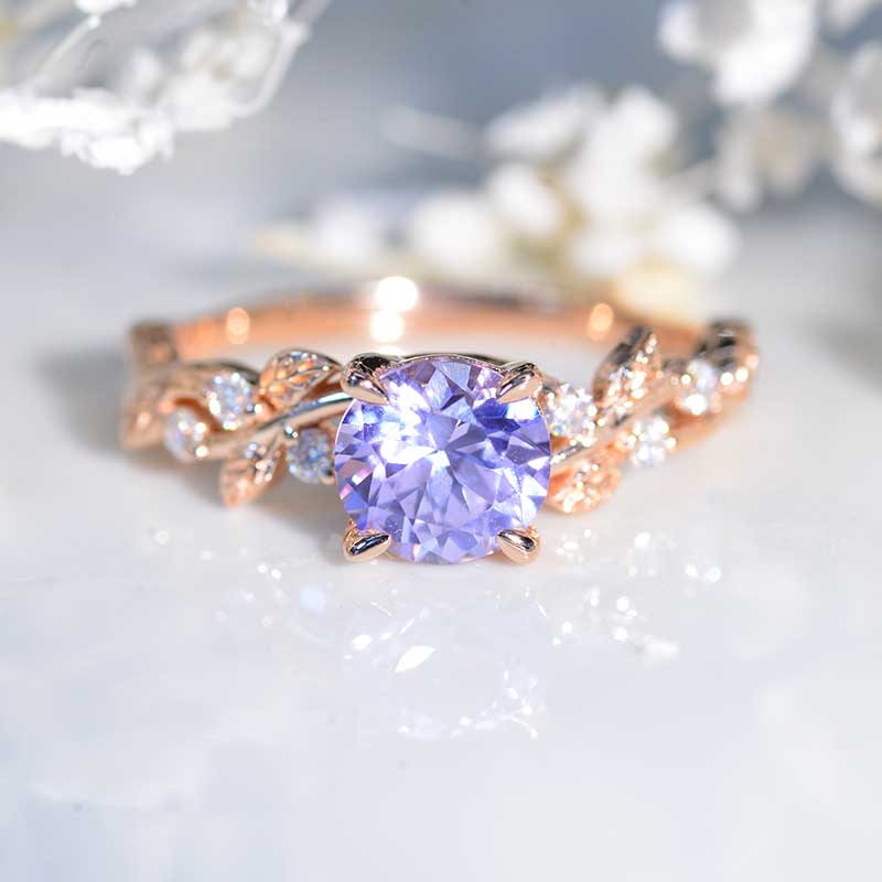 Round Lavender Sapphire Floral Rose Gold Engagement Ring Model 446-7