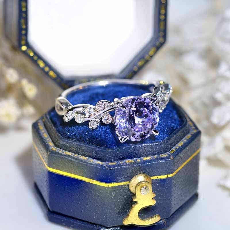 The default design option features 7mm Ethical Lab-Grown Lavender Sapphire Center StoneĀ VVS-Clarity, VG-Cut, Ex-Polish, VG-Symmetry