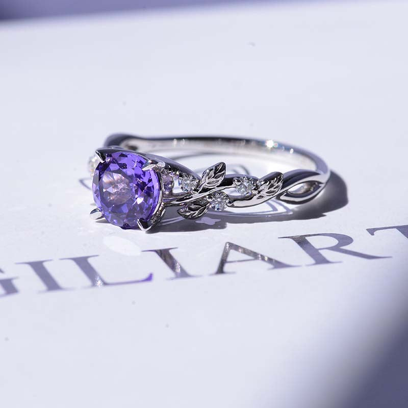Round Lavender Sapphire Floral Rose Gold Engagement Ring Model 446-7 - Giliarto