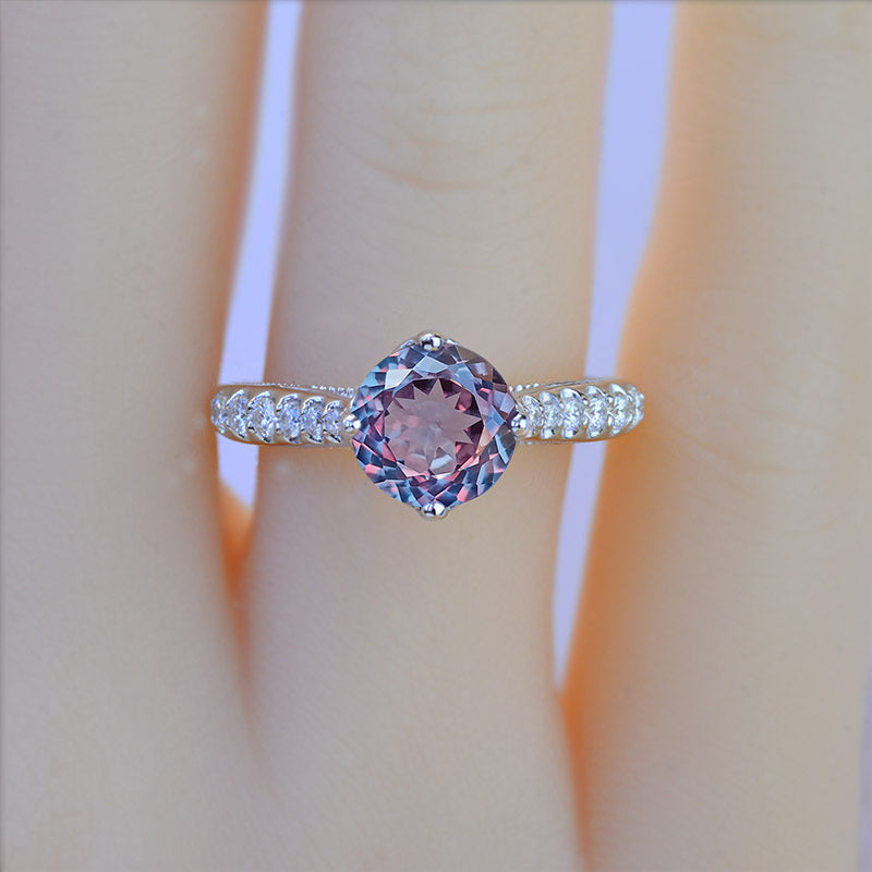 Round Portuguese Cut Alexandrite Engagement White Gold Ring Classic Customized Design Your Own Ring